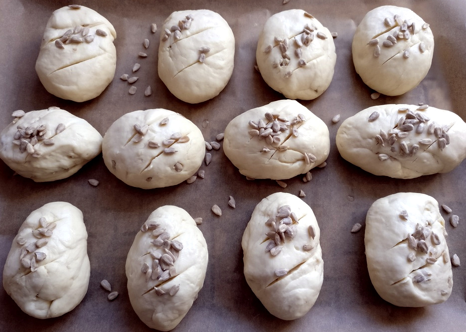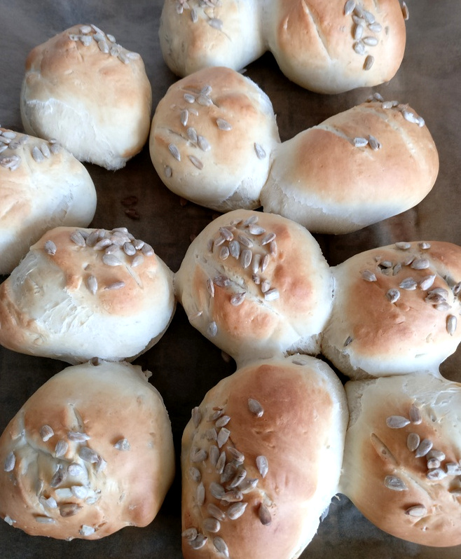 300 g Magerquark 12 EL Milch 12 EL Sonnenblumenöl 2 Päckchen Vanillezucker 1 Prise Salz 600 g Dinkelmehl Typ 630 2 Päckchen Backpulver 1 Handvoll Sonnenblumenkerne
