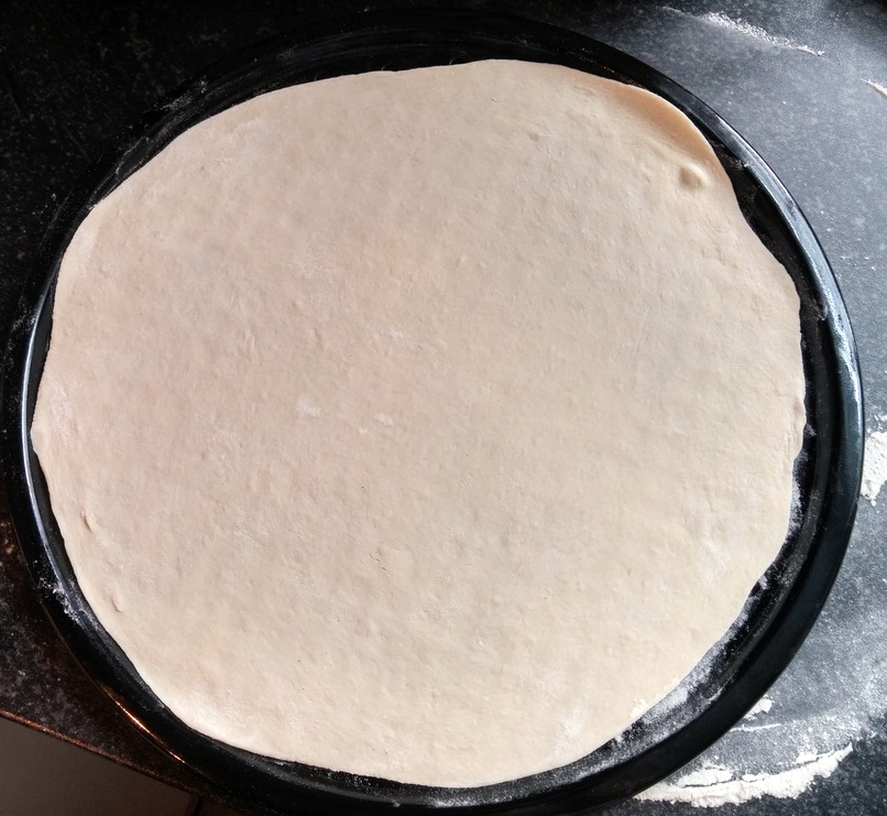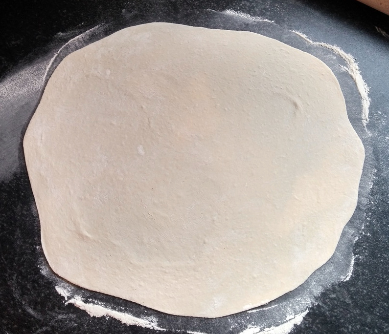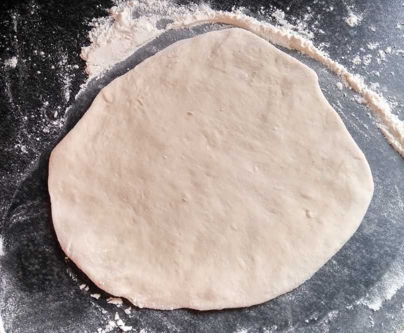 Für den Flammkuchenteig verwende ich mein bewährtes Basisrezept mit etwas Muskatnuss. Das Rezept findet ihr hier. Eigentlich verlängere ich gerne die Ruhephase des Teiges, um dafür Hefe einsparen zu können, aber die Zeit hat mir heute gefehlt. Also habe ich die normale Menge Hefe verwendet und konnte den Teig nach einer Gehphase von 2,5 Stunden sehr gut verwenden.