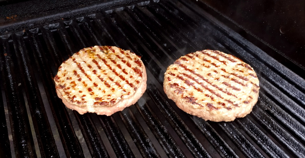 Der Broil King ist nach zehn Minuten Vorheizen mit 2/3 Leistung auf Temperatur, und ich sprühe noch schnell die Gussroste mit etwas Trennspray ein. Schließlich sollen die Patties ja nicht am Rost kleben bleiben. Alle Maßnahmen, um einen Burger-Patty ohne Unfall zu grillen, zeigen ihre Wirkung: Dank ausreichend Pressdruck beim Formen ist das gute Hackfleisch sehr formstabil, und brennt durch die gefetteten Grillroste auch nicht an. Perfekt!