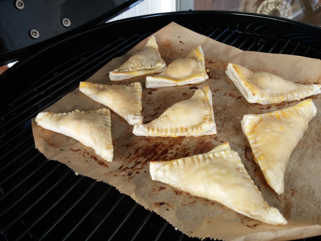 - Milch und Ei verquirlen und die Taschen damit bestreichen.