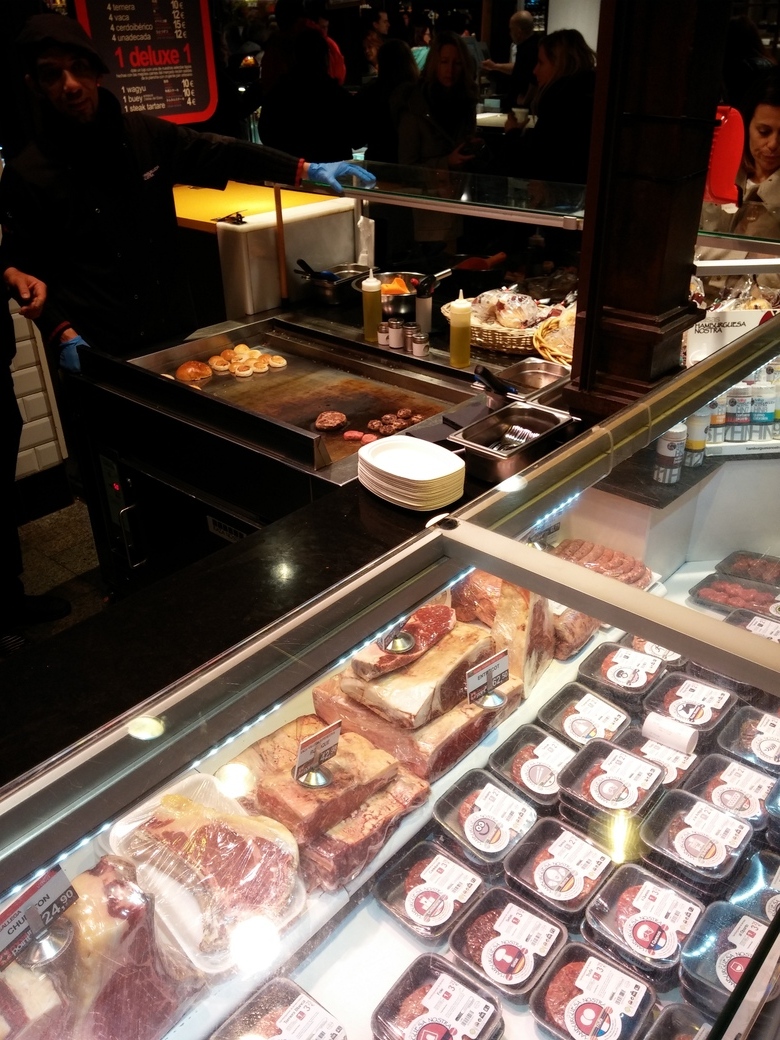 Auch auf Reisen lässt mich das Thema „gutes Essen“ nicht los. Bei einem Städtetrip nach Madrid sind wir auf unseren Streifzügen durch die Stadt auch durch die Markthalle „Mercado de San Miguel“ geschlendert. Ein Traum, diese Markthalle! Dass die Spanier ein sehr offenes Volk sind, ist ja bekannt. Auch das Essen in Gesellschaft gehört da mit dazu, und so ist die Markthalle zu jeder Tageszeit gut besucht.