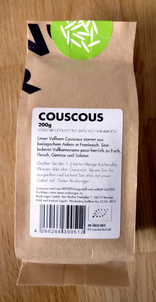 Los geht es! Für die Zubereitung der gefüllten Paprika marokkanischer Art greife ich auf Vollkorn-Couscous von Reishunger zurück. Reishunger ist ein junges Start-Up, das in seinem Pop-Up Store in Bremen und online alles zum Thema Reis verkauft. Reishunger legt großen Wert auf eine extrem gute Bio-Qualität, die man auch schmecken kann.