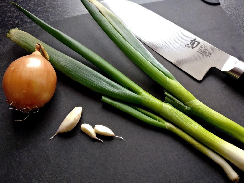 Die Zubereitung des Couscous ist sehr einfach: 100 g Couscous und einen gestrichenen Teelöffel Brühe mit 250 ml heißem Wasser aufgießen, durchrühren und für 15 Minuten quellen lassen. In dieser Zeit schneide ich das Gemüse und schwitze es auf dem Seitenkocher meines Broil King an.