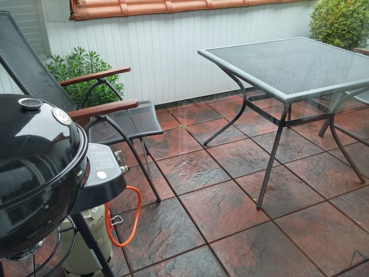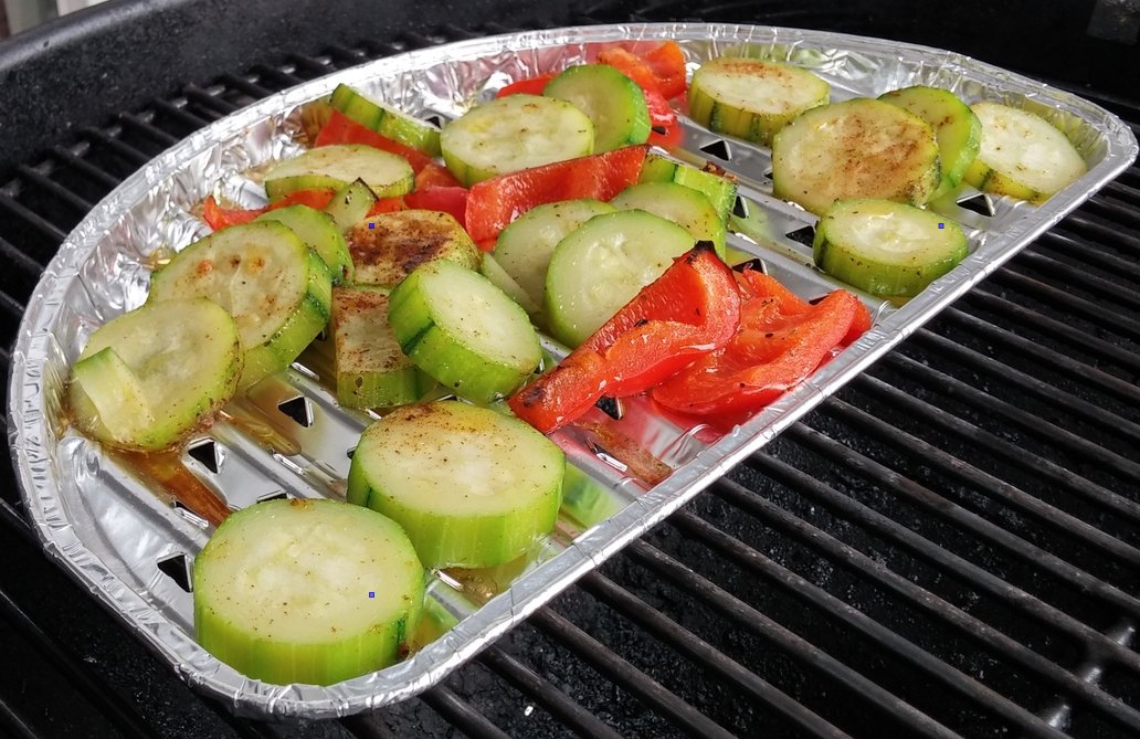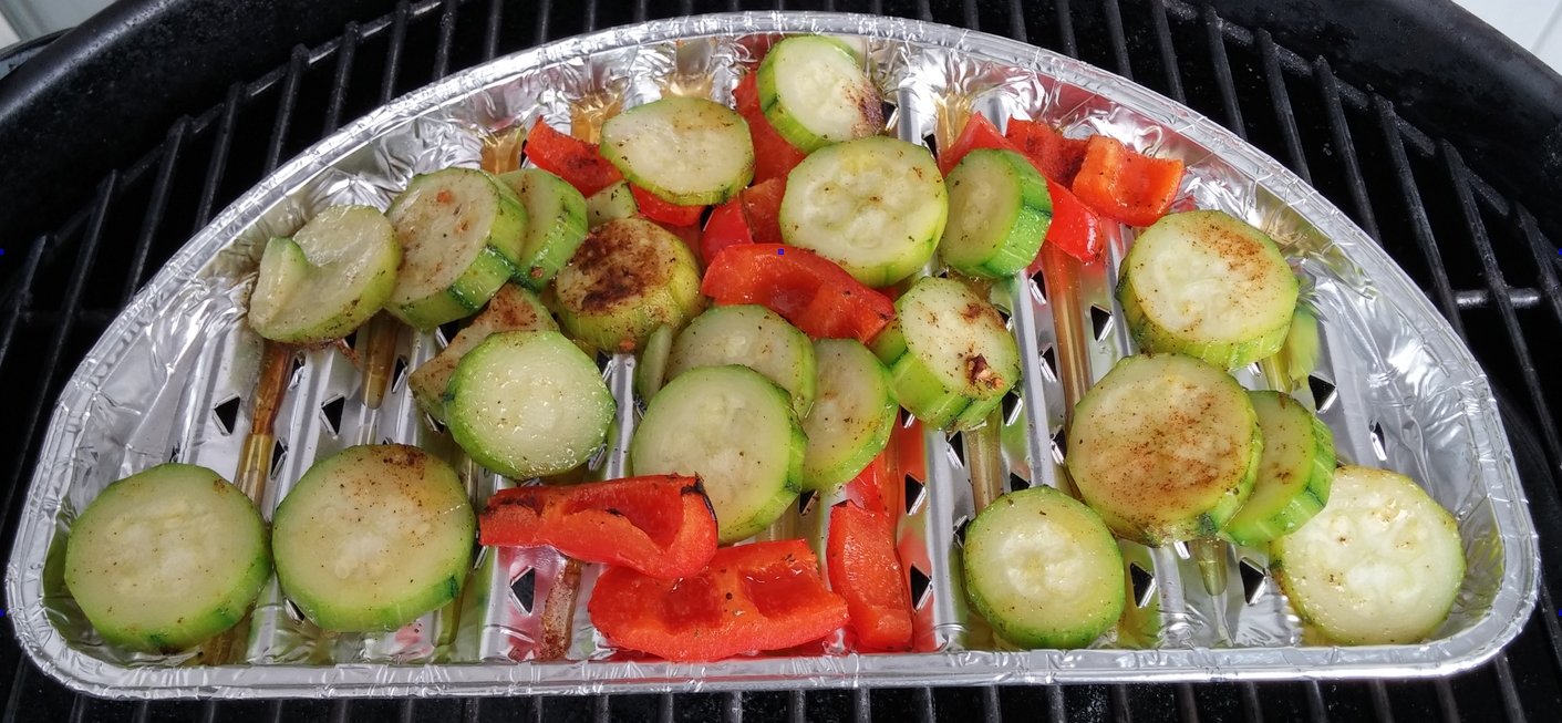 Mit dem Grillgemüse trotze ich dem schmuddelige Regenwetter. Nach einem kurzen Blick in den Tiefkühlschrank fand sich noch eine Packung mit etwas Zucchini und Paprika, die ich vor einiger Zeit mal frisch eingefroren hatte. Passt 😉