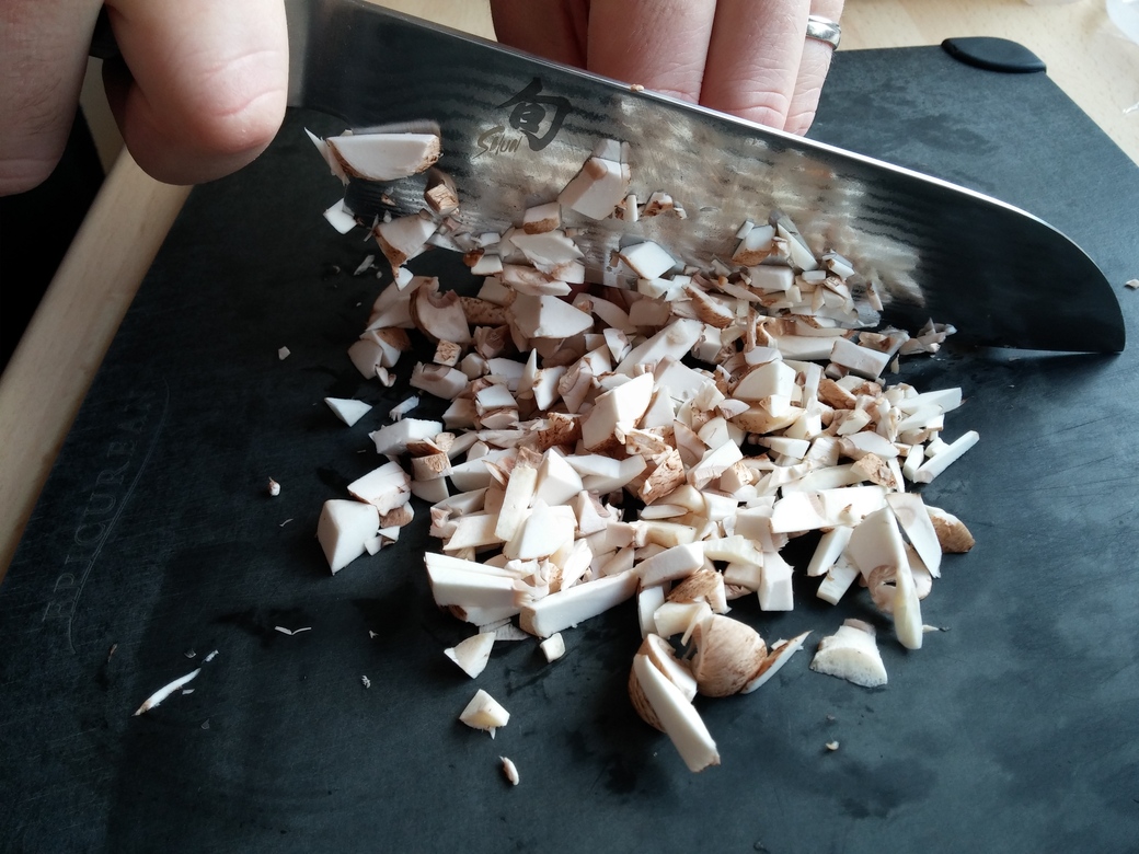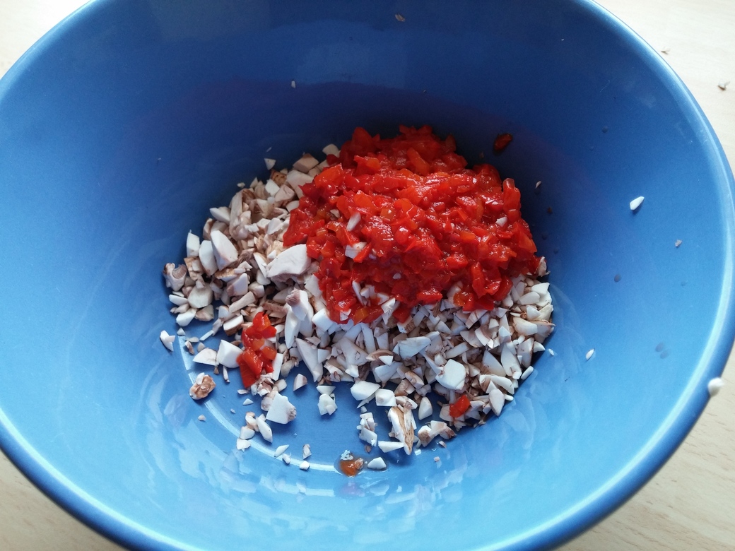 Ich kann übrigens die Kombination aus Paprika und Champignon in einem Hamburger nur empfehlen: Der Patty wird sehr saftig und aromatisch, ein Burgererlebnis der extravaganteren Art 🙂