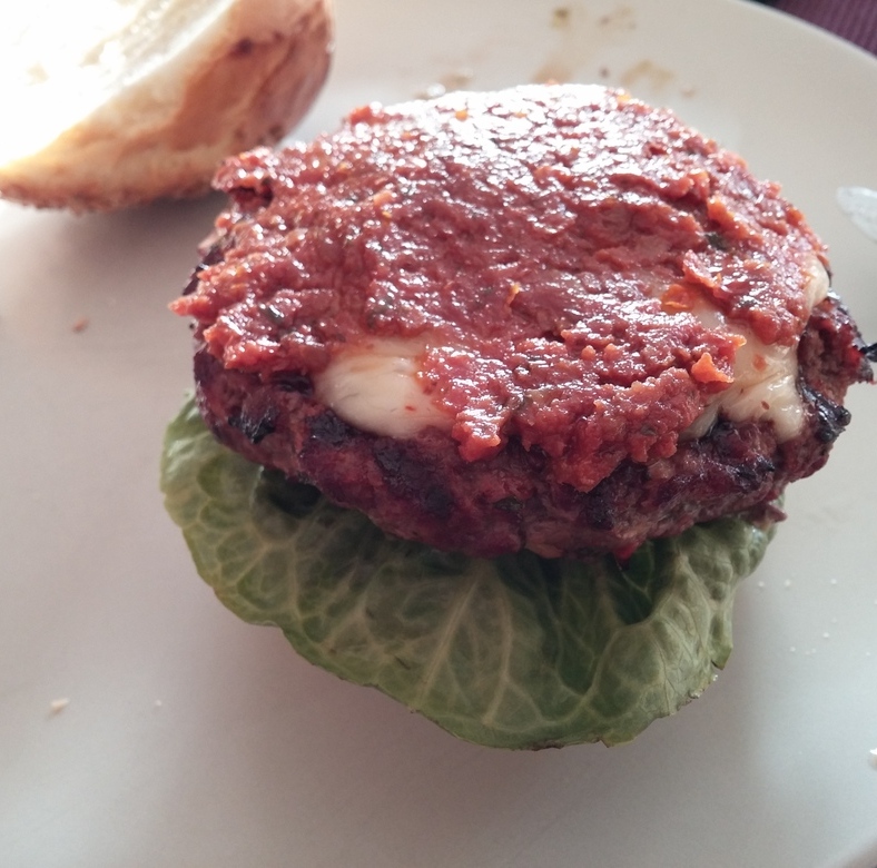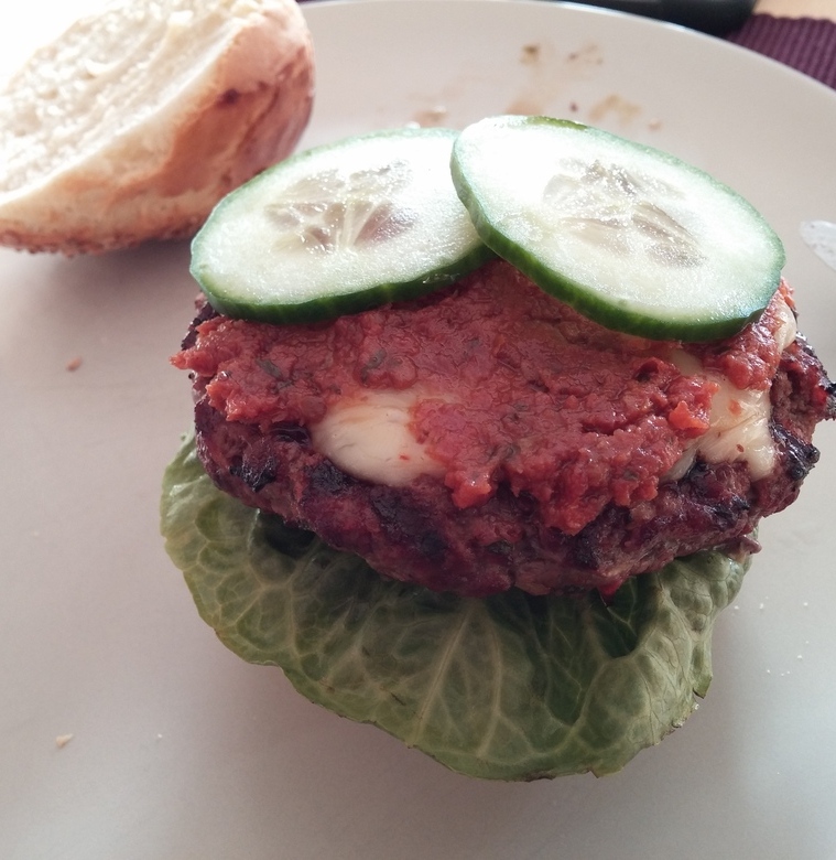 Achso, und in der ersten Grillrunde hatten wir etwas Käse auf die Hamburger gelegt, aber das war überflüssig. Durch die Champignons und die ital. Kräuter sind die Hamburger sehr geschmacksintensiv, da braucht es keinen Käse mehr…