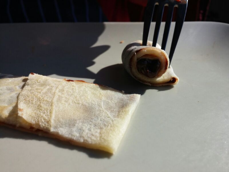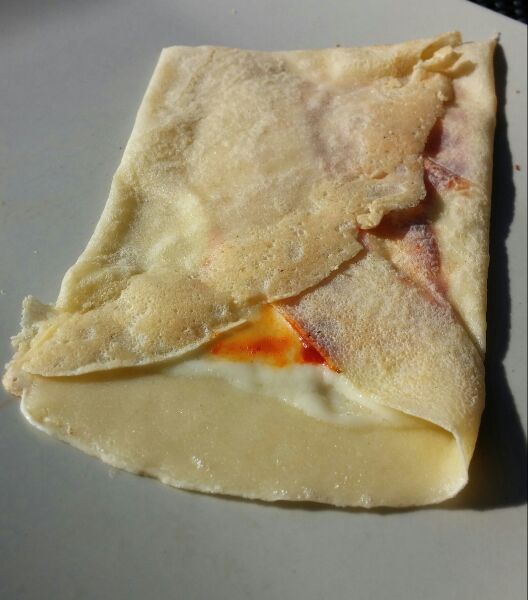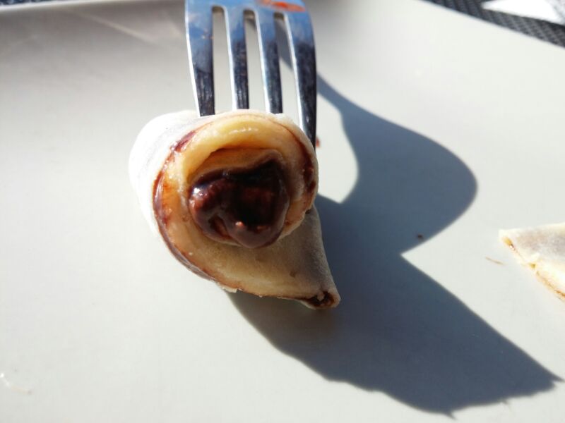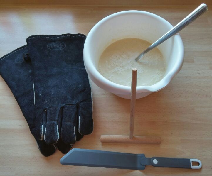 Der Teig war schnell angerührt (Rezept folgt!) und es sollte vier Varianten geben: Käse Crêpe, Käse Crêpe pikant mit Sambal Olek, Schinken Crêpe und süßer Crêpe mit Haselnuss-Pesto (auch bekannt als Nutella ;-)).