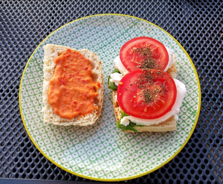 Ciabatta einen Moment abkühlen lassen, beide Hälften mit Pesto bestreichen, Tomaten- und Mozzarellascheiben drauf geben und zum Schluss mit etwas Basilikum garnieren. Und für mich gehört natürlich auch etwas von der 9-Pfeffer-Symphonie auf die Tomaten! Fertig ist der Italian BBQ Quickie. Schnelle Kost vom Rost kann so lecker sein 🙂