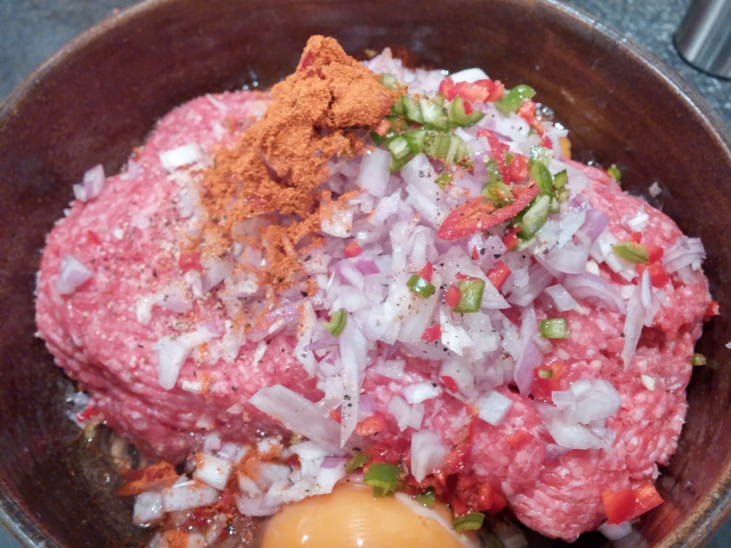 Die im Rindfleisch enthaltene Chili schmeckt für mich schon fast zu mild, aber das mag an der Sorte liegen. Für die individuelle Schärfe habe ich daher durch zusätzliche, kleingehackte Chili gesorgt.
