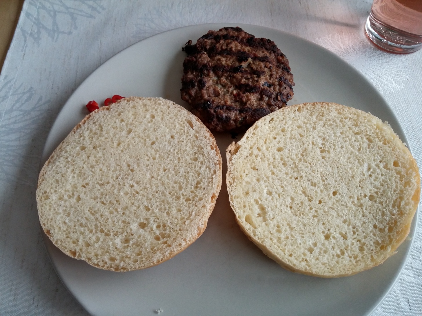 Heute entscheide ich mich für das Fleisch, darauf kommt das Grillgemüse und die zweite Brötchenhälfte. Und weil ich es gerne schärfer mag, habe ich mir noch etwas zusätzliche Chili aufgeschnitten und mit auf den Burger gelegt.