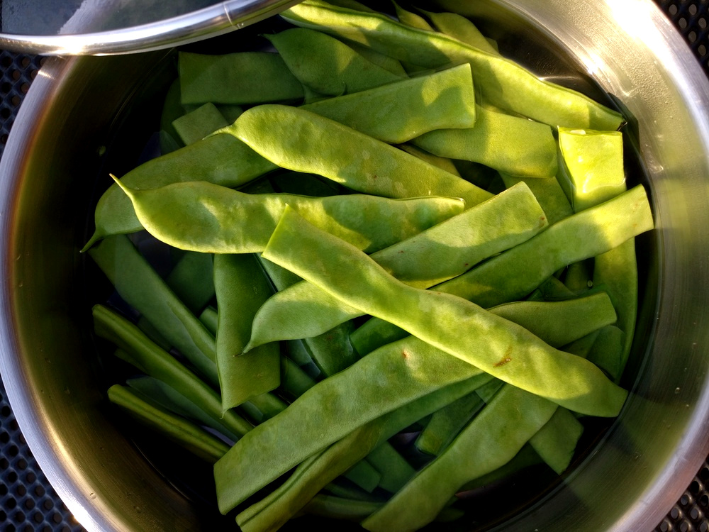 Bleiben noch die Stangenbohnen. Sie sind einen Tick zu weich geworden, da ich sie wohl einige Minuten zu lange vorgekocht hatte. Das ist aber nicht schlimm, auch so schmecken sie sehr gut.