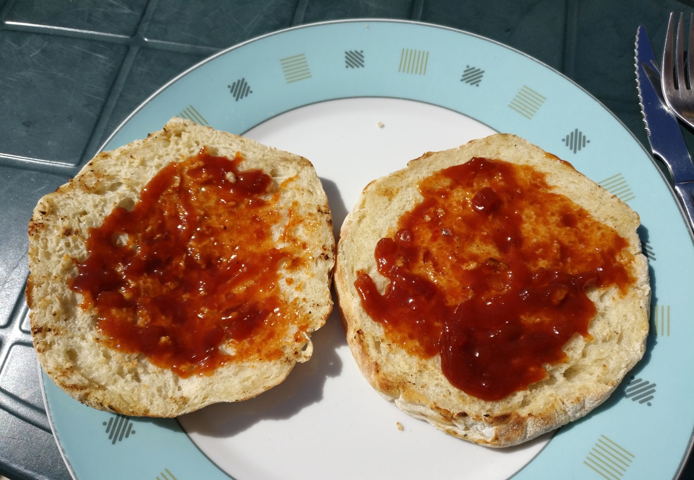Zum Schluss röste ich auch kurz das Bolo do Caco, das portugiesische Fladenbrot, an. Nach schätzungsweise 15-20 Minuten sind die Zutaten für den Hamburger Bolo do Caco fertig.