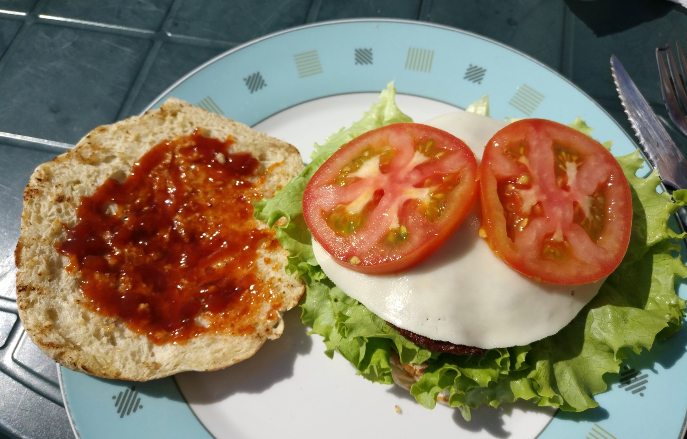Allerdings weiß ich nun auch, welche Gewürze der Metzger in den Burger getan hat: nämlich Knoblauch, Knoblauch und noch mal Knoblauch 🙂 Plus ein bisschen grüne Kräuter, die aber kaum gegen den Knobi ankommen. Aber da ich Knoblauch sehr gerne mag, finde ich daher auch die portugiesische Küche bisher sehr lecker.
