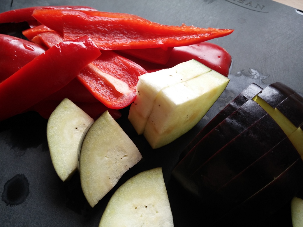 Ach, was ist das schön. Die Sonne, man bereitet draußen die Paprika-Auberginen-Wurst-Pasta zu und kann es auch dort genießen. Da schmeckt es gleich doppelt so gut!