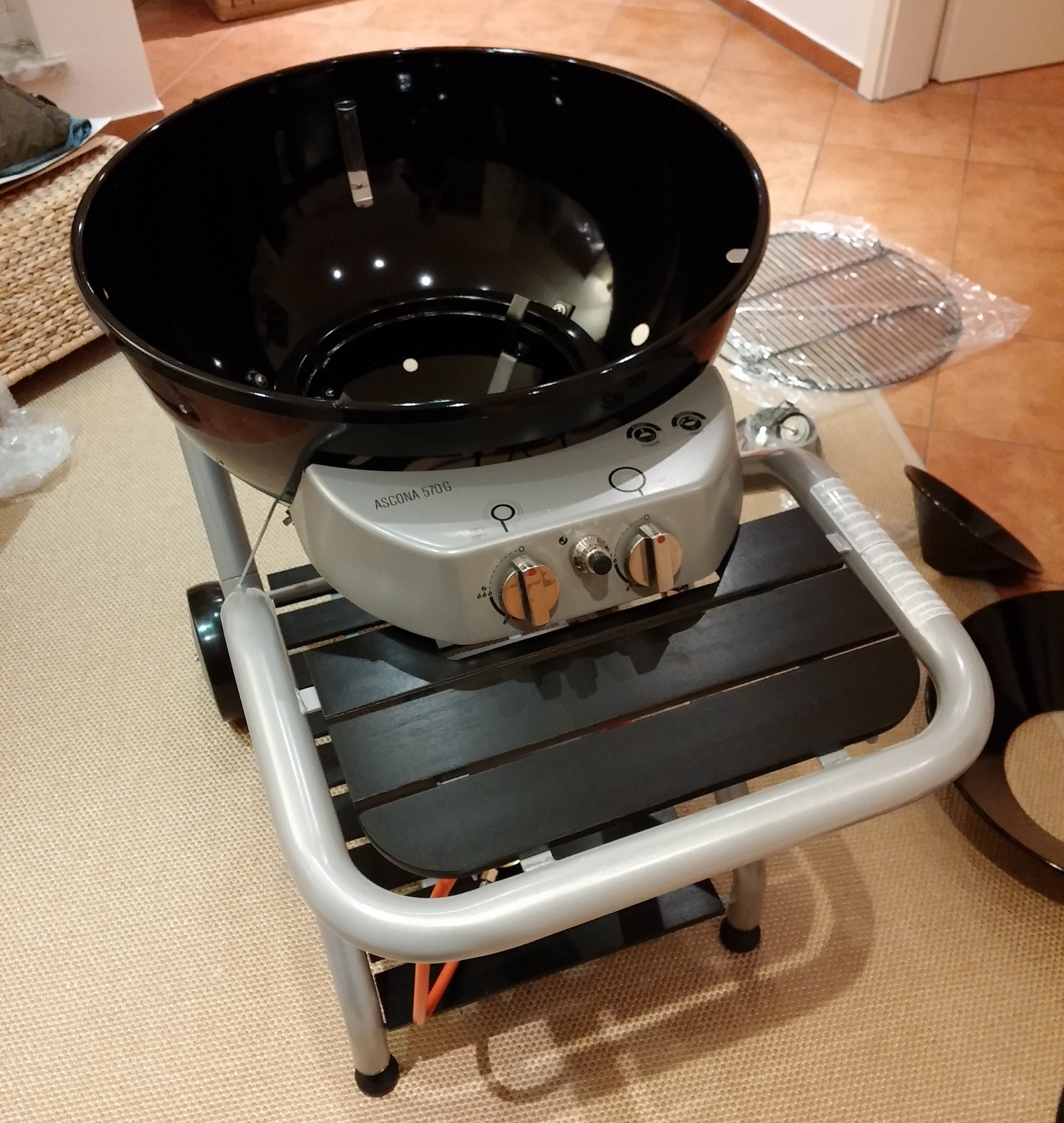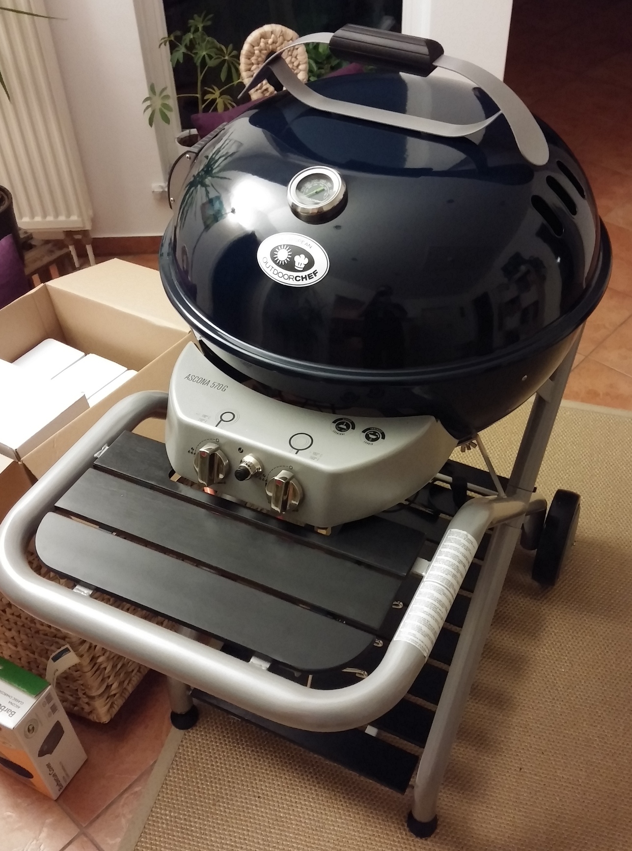 Also musste ein neuer Grill her, der L&S kann und mehr Grillfläche hat und – ganz wichtig – nicht so riesig ist, dass man nicht mehr mit vier Personen auf dem Balkon sitzen könnte. Die klassischen rechteckigen BBQ-Grilsysteme schieden aufgrund des doch immensen Platzbedarfs aus, so dass ich mir den Outdoorchef ASCONA 570 G mit seinem Zweibrennersystem ausgeguckt hatte. Dieser deckt über den kleinen Brenner den Bereich von 95-110 Grad ab und über den großen Brenner 160 – 350 Grad. Perfekt! Also hin zum Gashändler meines Vertrauens und den Grill eingepackt und entspannt zuhause aufgebaut. Viel Spaß beim Durchstöbern der Aufbaubilder!