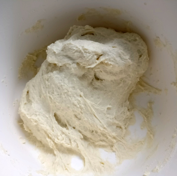 - Joghurt, Mehl, Salz und Zucker mit der Hefe-Mischung verkneten.