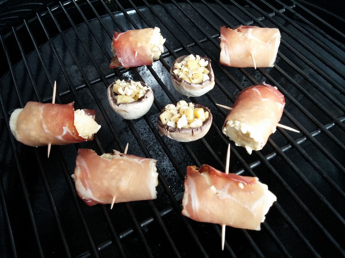 Die so präparierten Bananen im Speckmantel kamen dann für 15 Minuten bei 220 Grad auf meinen vorgeheizten Outdoorchef Ascona zum indirekten Grillen.