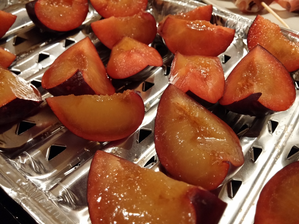 Es ist mal wieder Zeit, die süße Ecke weiter zu füllen – dieses Mal mit Pflaumen vom Grill. Letztes Wochenende habe ich deshalb wieder etwas herumexperimentiert. Alles was ich dafür brauchte, waren Pflaumen, brauner Zucker und eine gelochte Aluschale.
