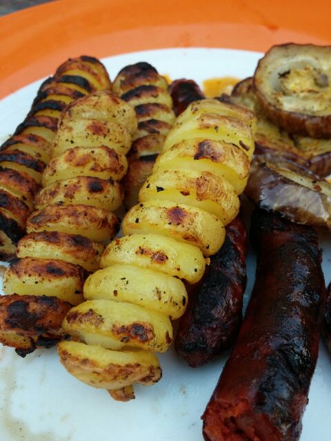 Das Grillen mit dem Weber Q300 ist dann nicht ganz so einfach. Der Grill baut keine gute indirekte Hitze auf, so dass die Kartoffeln relativ schnell schwarz werden, aber dabei noch nicht gar sind. Da heißt es aufpassen!