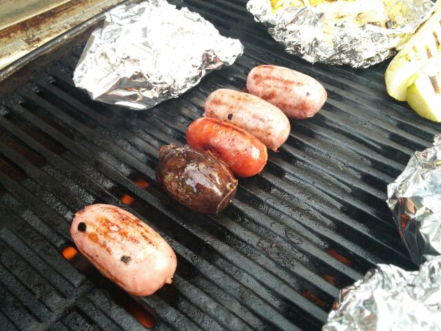 Da die Wurst roh ist, kommt diese als erstes auf den Grill. In der Zwischenzeit kann das Gemüse geputzt und vorbereitet werden. Ein Teil der Zucchini sowie die Zwiebel kommt kleingeschnitten in eine Schale aus Alufolie, wird mit Öl und etwas Pfeffer und Salz gewürzt. Der Rest der Zucchini wird als Ganzes mit Öl eingerieben und mit etwas Pfeffer und Salz gewürzt.