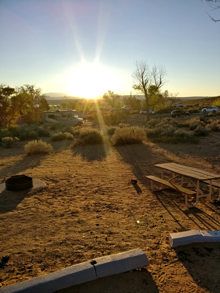 Vom Grand Canyon Zucchini Bagel geht es zum Wahweap Bacon Bagel. Ihr merkt schon, dies wird eine kulinarische Reise durch die USA 🙂 Ziel für heute ist nämlich die Wahweap Bay am Lake Powell in Arizona, direkt an der Grenze zu Utah. Auf dem Wahweap RV Park & Campground gibt es natürlich auch wieder Feuerstellen, sodass das Abendessen gerettet ist.