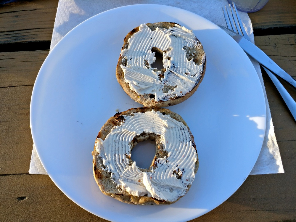 Da wir eine 6er-Packung Multigrain Bagels gekauft haben, gibt es heute – Überraschung – Bagels! Dieses Mal eine Variante mit Bacon und da wir in der Wahweap Bay Halt machen, steht damit auch der Name: der Wahweap Bacon Bagel. Das braucht man für zwei Wahweap Bacon Bagels: