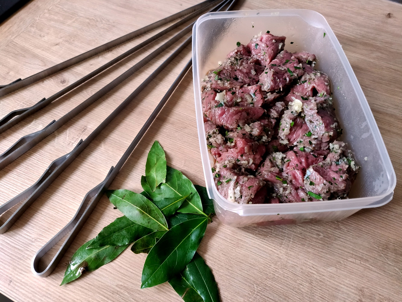 Bereits einmal habe ich mich an Rindfleischspießen versucht, die damals auch nicht schlecht waren, aber nicht so lecker wie auf Madeira geschmeckt und geduftet haben. Und da ich zwischenzeitlich ein Kebab-Grillspieß-Set angeschafft habe, bietet sich mir nun auch die Möglichkeit, das Grillen der Espetadas anders zu gestalten. Aber dazu später mehr, jetzt kommen erstmal die Zutaten für die madeirischen Rindfleischspieße mit Lorbeer und Knoblauch für vier hungrige Mäuler: