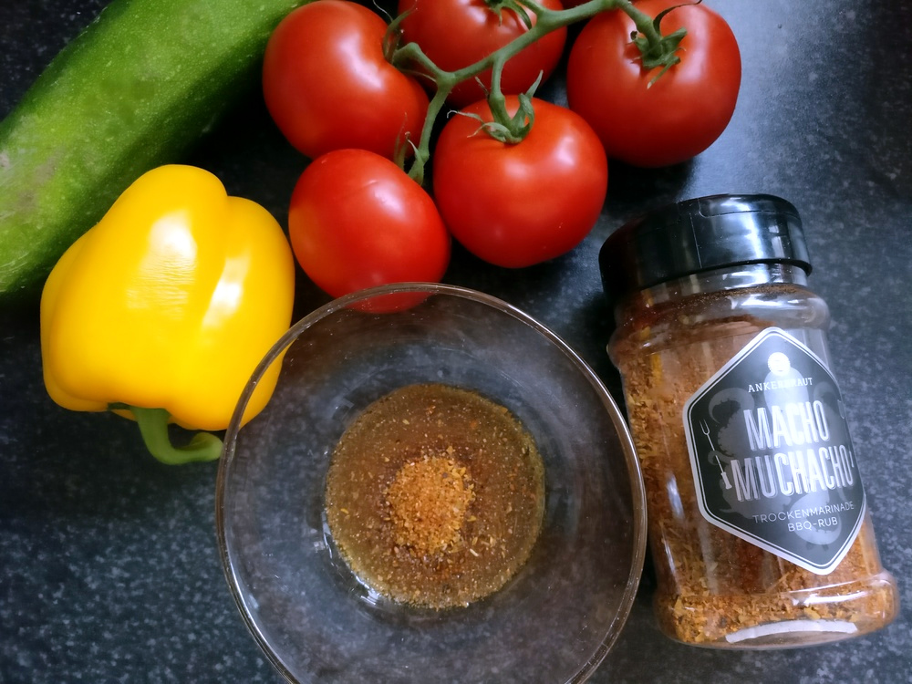 Egal, nun geht es um den Geschmack: Den Ankerkraut Macho Muchacho Rub hatte ich ja bereits mehrfach im Einsatz und stets für gut befunden, egal ob für Spieße oder Kartoffeln. Und auch dieses Mal macht der Rub seine Sache sehr gut, denn er bringt ein feine Kräuternote von Rosmarin und Oregano ein, ohne dabei den typischen BBQ-Geschmack durch Paprika und Kreuzkümmel auszulassen. Ein echtes Allround-Talent.