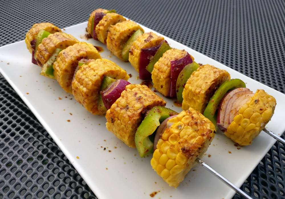 Ein schnelles und leckeres Grillgericht ist der Grillspieß mit Maiskolben, Paprika und Zwiebeln. Statt wie üblich den Maiskolben als Ganzes zu grillen, kommt er dieses Mal in Stücke geschnitten auf den Grillspieß. Für den Grillspieß mit Maiskolben braucht ihr folgende Zutaten für zwei Personen:
