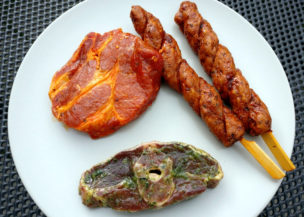 Der Grillteller mit Kartoffelspalten und Paprika sorgt heute für Vielfalt, denn ich habe beim Metzger Nackensteak, Lammsteak und zwei Dönerspieße erstanden. Zusammen mit Kartoffelspalten und etwas Paprika ist dies mein heutiges Grillmenü, für das ich somit folgende Zutaten benötige: