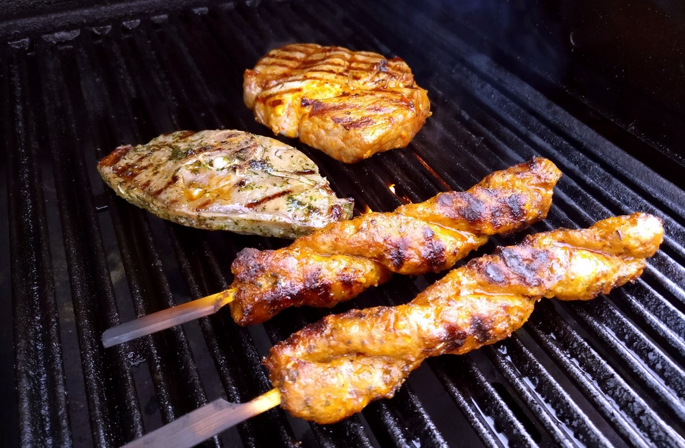 In der direkten Hitze grille ich nun das Schweinenackensteak sowie die beiden Dönerspieße an. Das Lammsteak muss noch warten, da es nur kurz grillen muss. Schließlich soll das Fleisch innen rosa sein und nicht zäh werden.