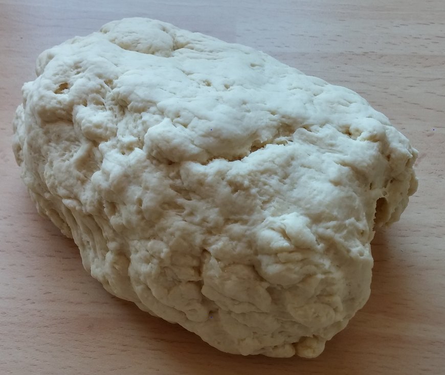 Zurück zum Rezept: Die halbe Mehlmenge nun mit der Flüssigkeit gut verrühren, das kann auch gerne per Knethaken erfolgen. Wenn die Masse gut verrührt ist, nach und nach das restliche Mehl hinzufügen, bis sich ein elastischer Teig gebildet hat. Wer mit dem Handrührgerät und Knethaken unterwegs ist – spätestens auf dem letzten Drittel Mehl ist Handarbeit angesagt 🙂