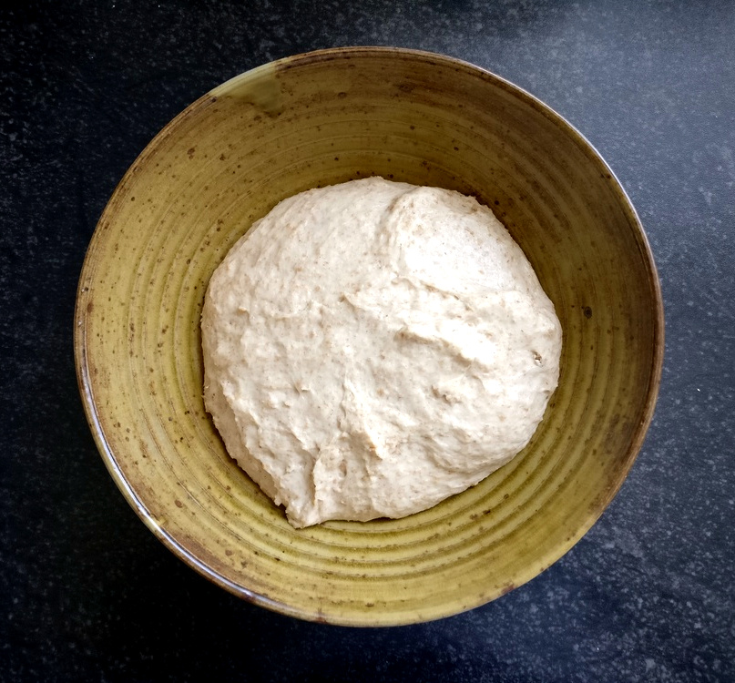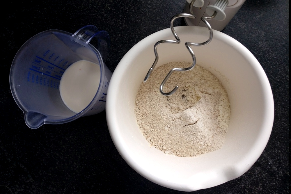 200 g Dinkelmehl Typ 630 100 g Vollkorn-Dinkelmehl 120 g Joghurt 1,5% 1/2 Würfel Hefe 2 EL Honig 100 ml Milch 50 ml Wasser Prise Salz
